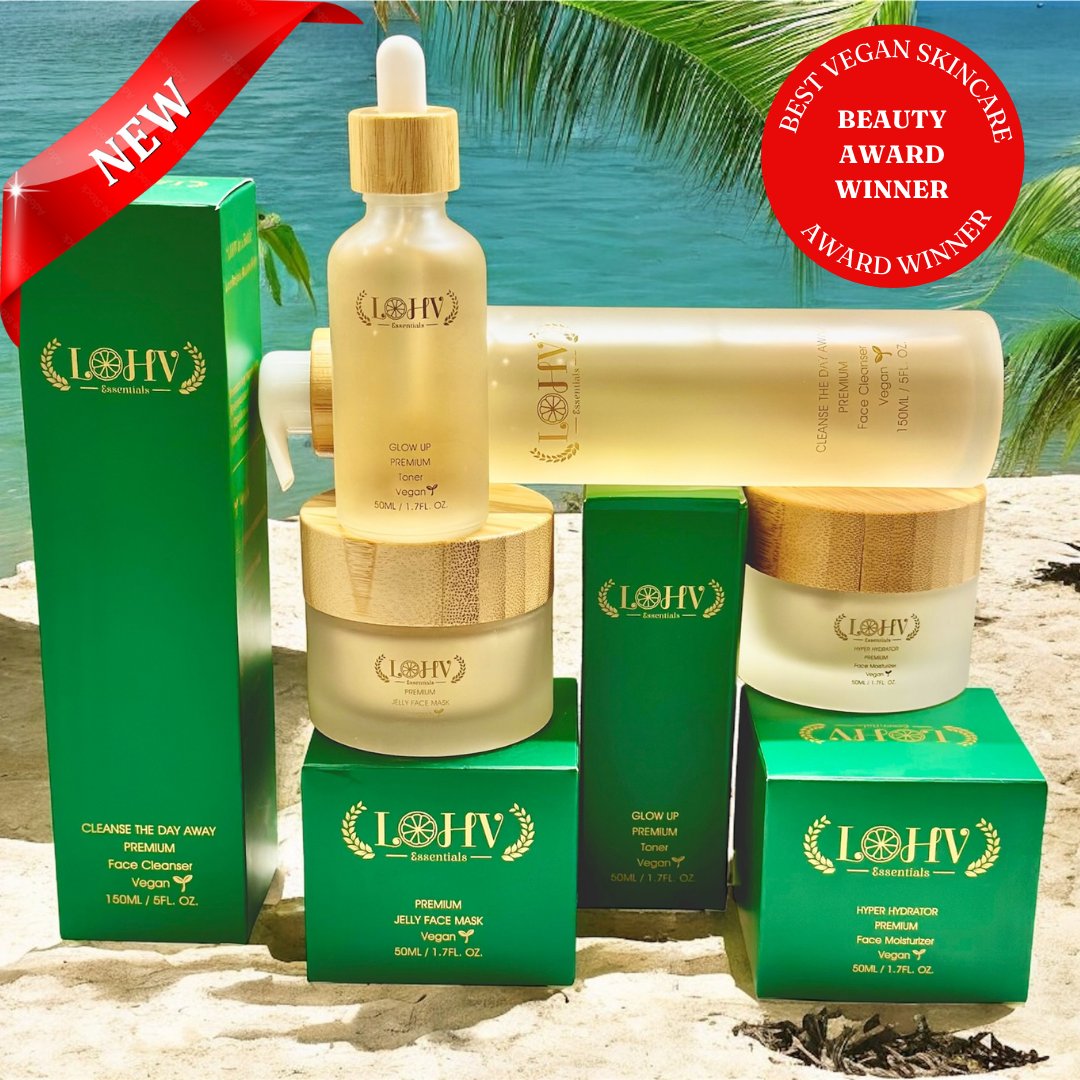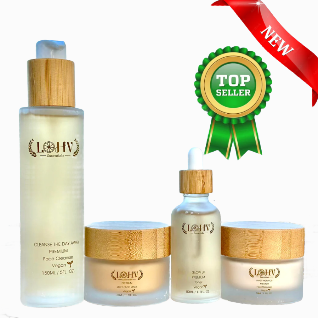 4 STEP PREMIUM 100% VEGAN SKINCARE SOLUTION SYSTEM With Rosemary + Hyaluronic acid + Vitamin C + Retinol + Lactic acid + Glycolic acid + Vitamin E + Niacinamide + Kombucha + Aloe vera