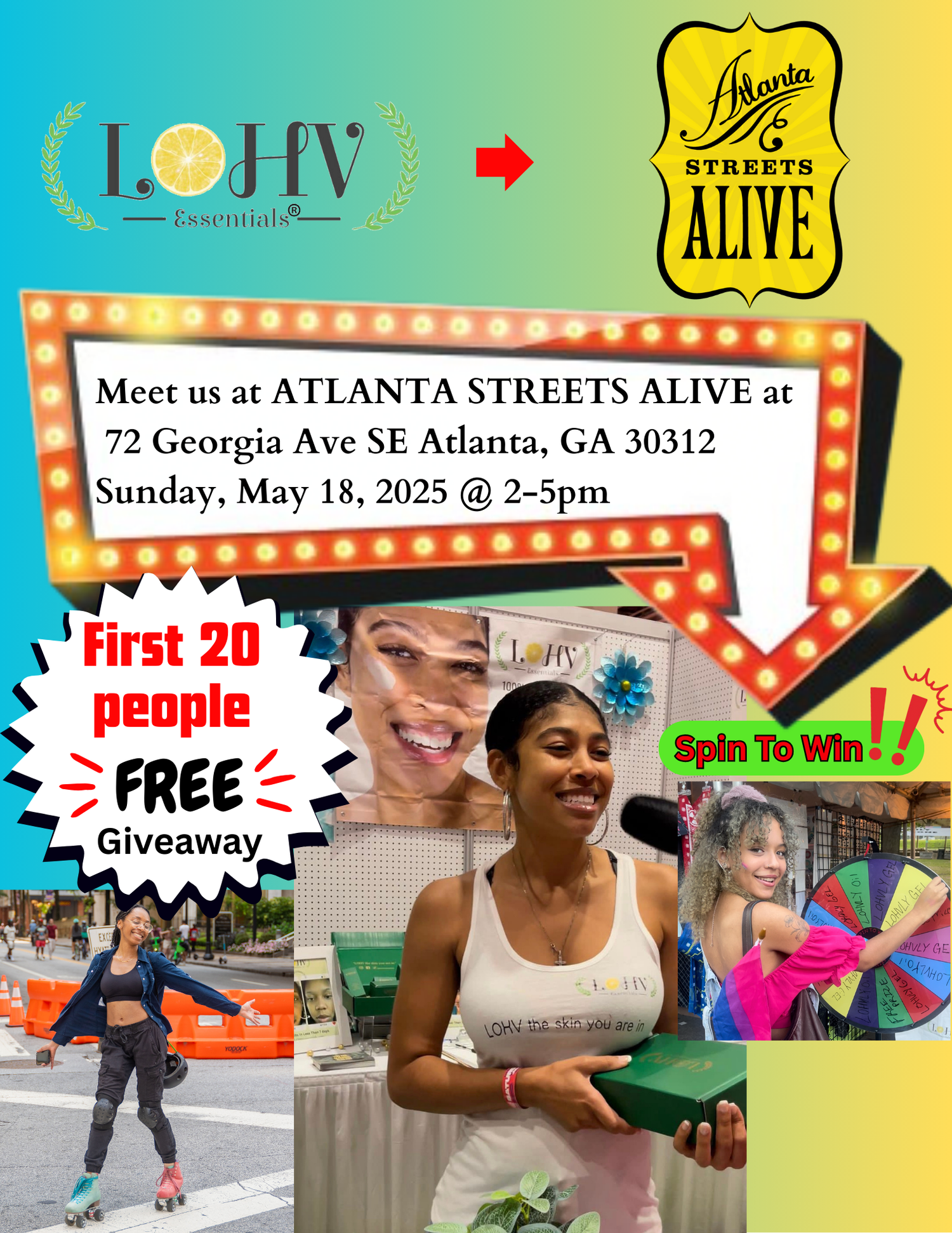 We are thrilled to announce our exclusive pop-up event at Atlanta Street Alive! And we want YOU to be part of the celebration! This is your chance to meet the LOHV Essentials team in person, grab amazing deals, and experience our premium vegan skincare products firsthand. 🌿✨